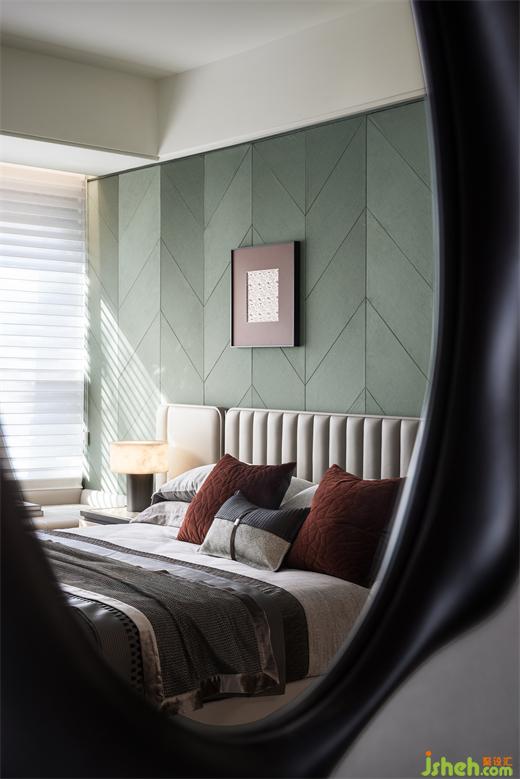長(zhǎng)輩房?jī)?nèi)以色彩與形狀發(fā)散開來,簡(jiǎn)而有序的幾何壁紙,散發(fā)著沉穩(wěn)安定的情緒感知。展示柜與臺(tái)面的組合手法,兼具功能與美學(xué),方寸之間皆與長(zhǎng)者的習(xí)性相契合,達(dá)到理性與感性的平衡。