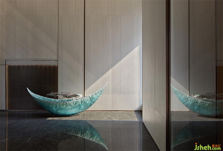 琉璃制作的舟形藝術(shù)品則化作路引搖曳,帶領(lǐng)觀者邂逅更多驚喜,置于其中的朵朵繁花與前廳遙相呼應(yīng),悄然刻畫在地元素,增添些許靈動(dòng)姿態(tài)。