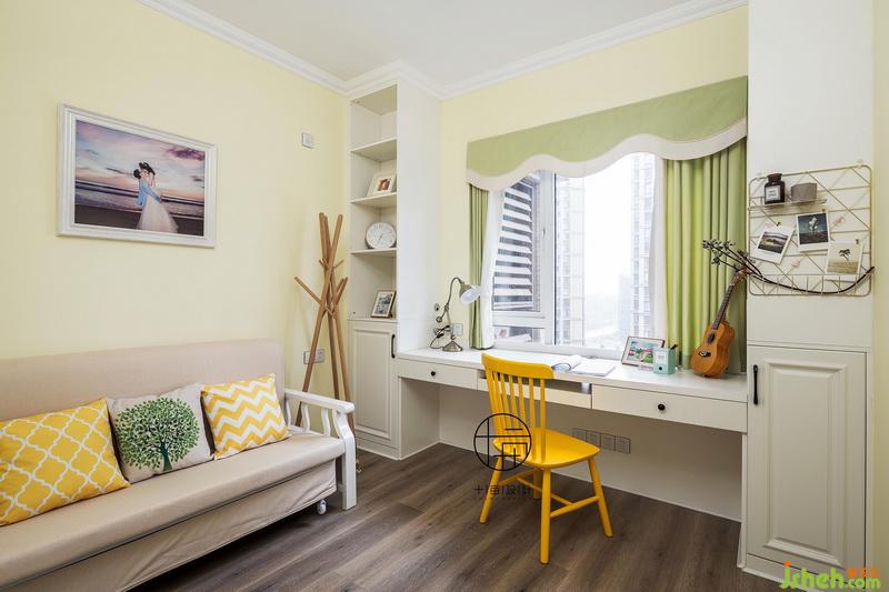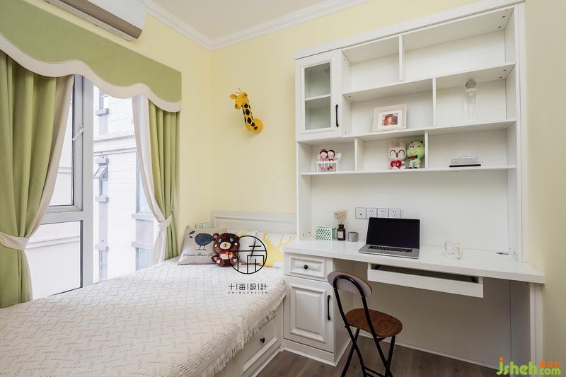 兒童房室內(nèi)設(shè)計師延續(xù)書房溫馨基調(diào),定制榻榻米小床架,連接書桌書架