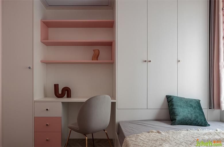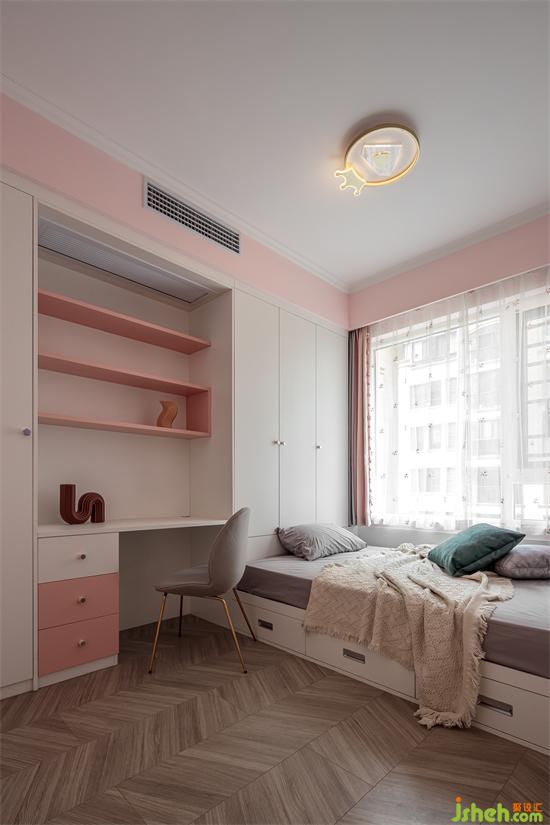 家裝設計以淺色系為主,用了代表著少女的浪漫粉色加以裝點。