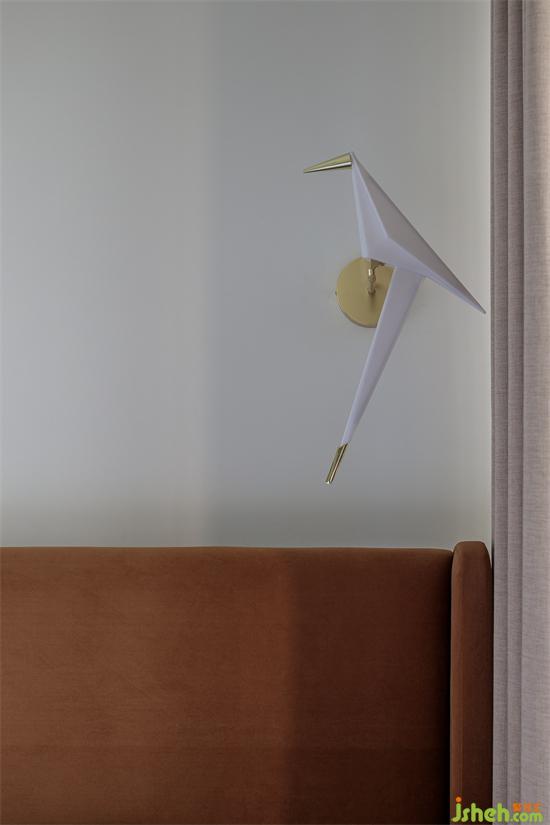床頭燈的選擇別具匠心,線條一直一曲,顏色一黑一白,家裝設(shè)計(jì)造型一橫一豎,是對立與統(tǒng)一的生活哲學(xué)。