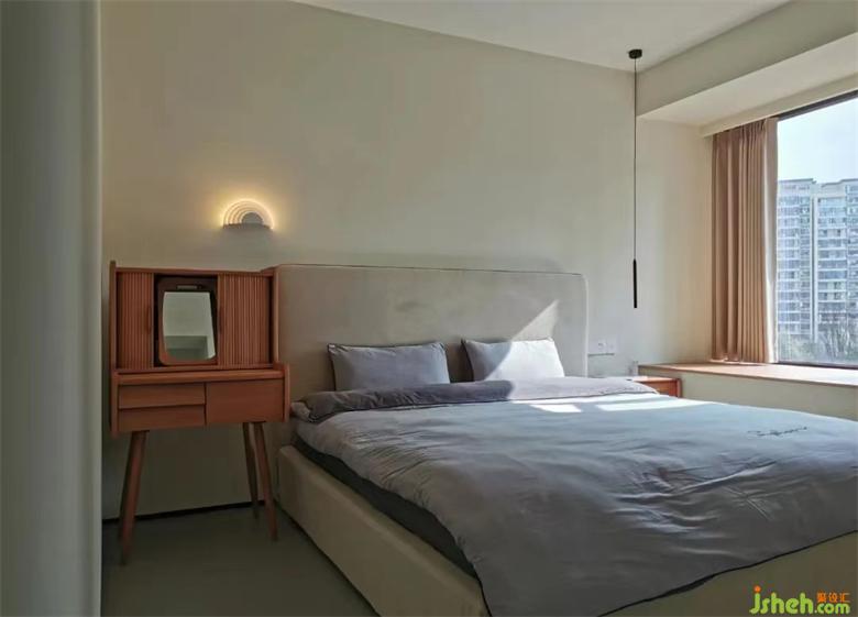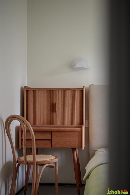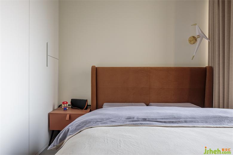 一邊是床頭柜,一邊是梳妝柜,打破傳統(tǒng)的對稱布局,是多元審美的詮釋與踐行。