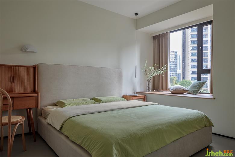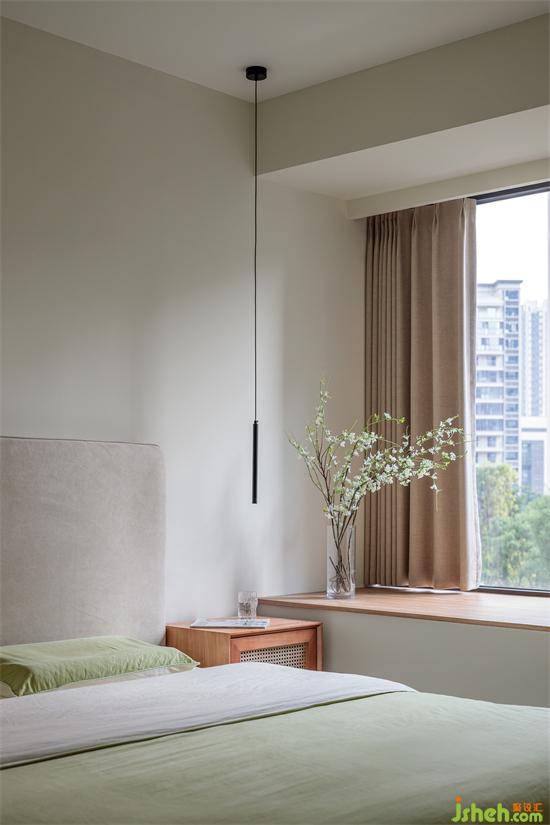 家裝設(shè)計(jì)精巧,氛圍溫馨,低飽和色讓整個(gè)臥室空間呈現(xiàn)出一種安然靜謐之感。