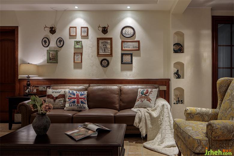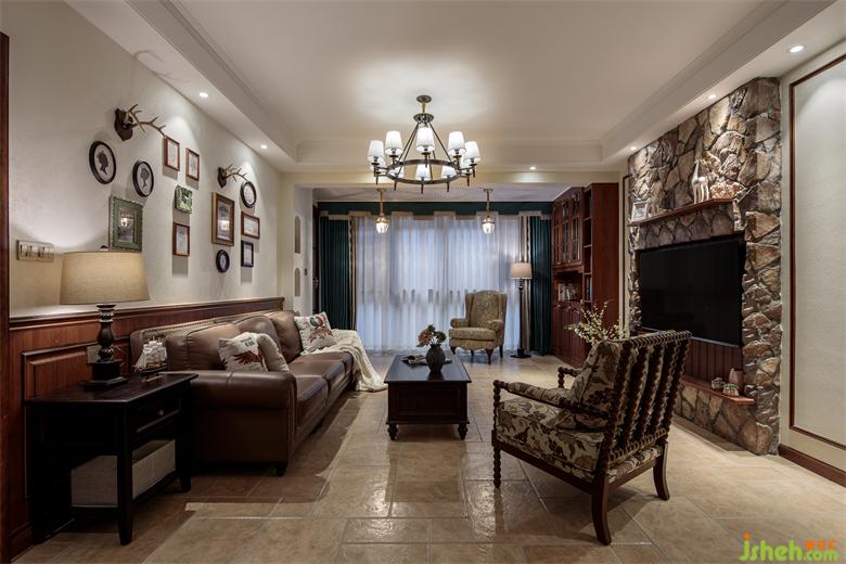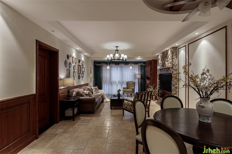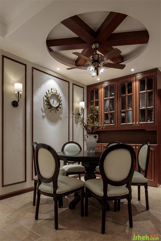 具有典型的美式鄉(xiāng)村風(fēng)格,把“方”和“圓”兩個(gè)要素用到了極致。家裝設(shè)計(jì)頂面弧線與側(cè)墻的直線相得益彰,矩形實(shí)木吊頂與圓形實(shí)木餐桌上下成趣,細(xì)節(jié)滿滿。