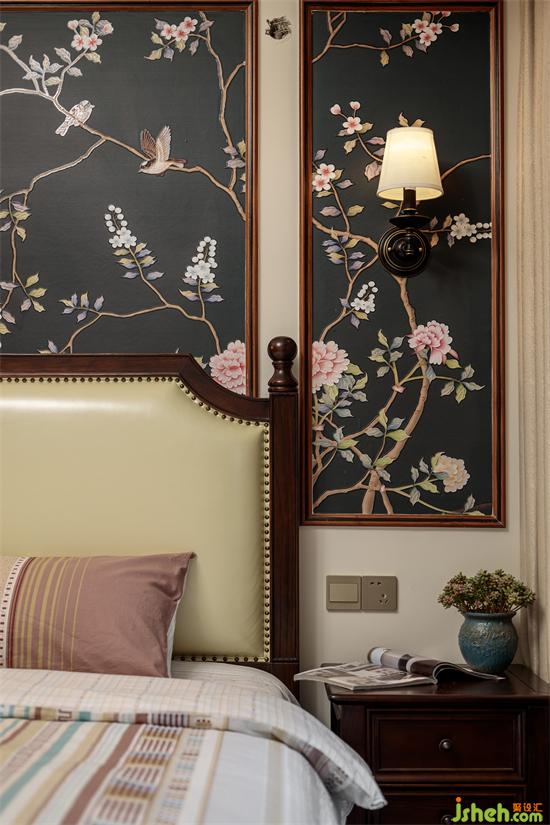 臥室延續(xù)了典雅大氣的氛圍,背景墻選擇了暗色花系,顯得淡然莊重。十畝家裝設(shè)計(jì)在滿足實(shí)用的情況下,盡最大可能保證了空間的朗闊,提升舒適感。