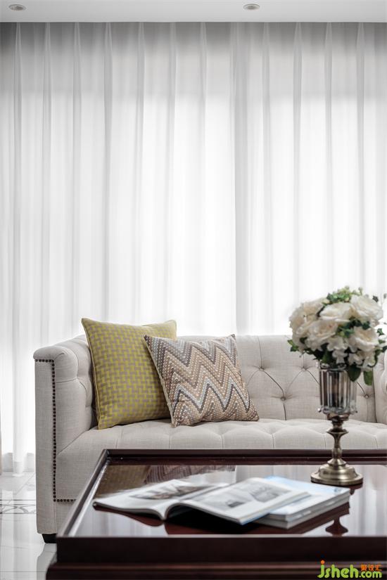The house type is square, the line is fluent, the living room design appears atmospheric, elegant. The overall color gradually unfolds in neutral color, from dark furniture to light coffee color wall, sofa background and wall color coordinate with each other.