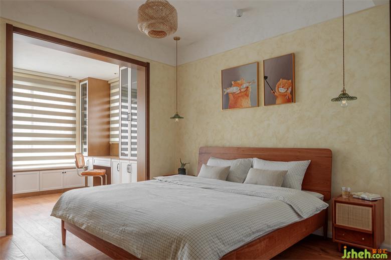 At the same time, low lockers and bookcases are customized at the balcony, which further enhances the functionality of the bedroom. Reading, writing, working and playing computer can be realized in the bedroom. The spacious cloakroom also provides a play space for mumu (pets).