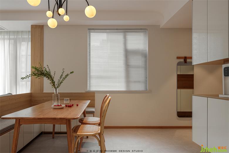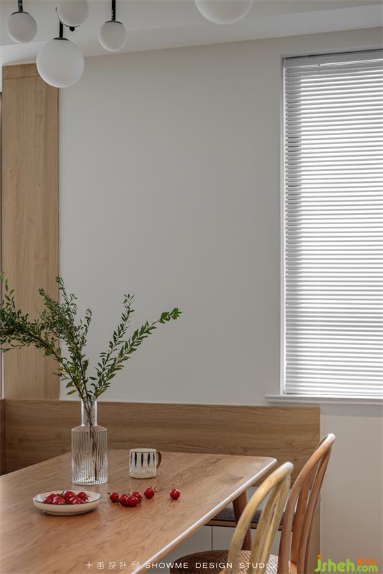 陽光透過百葉窗,均勻地灑進(jìn)屋里。家裝設(shè)計(jì)清新的白色和溫暖的木色搭配在一起,所有的煩躁不安在這一刻被治愈,空氣也變得寧靜溫柔起來。