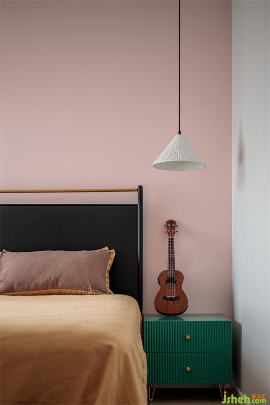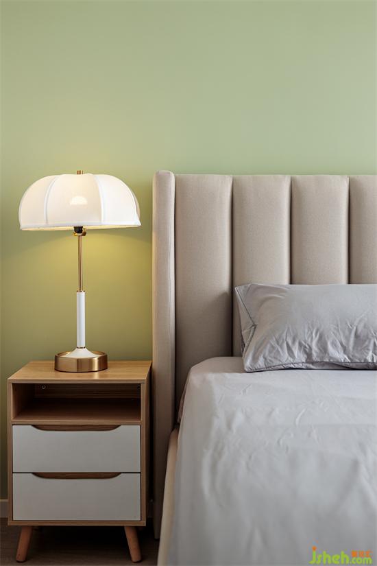 淡雅的茶綠,清凈的檀紅,疲憊感瞬間得到釋放。家裝設(shè)計隨之而來的舒緩、輕柔包裹住身體,緩緩入夢。