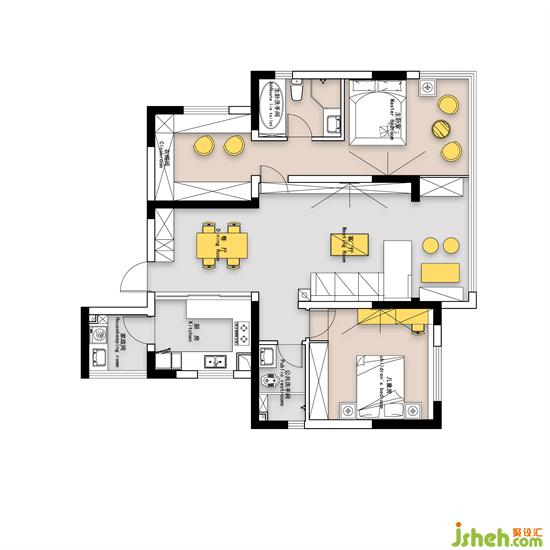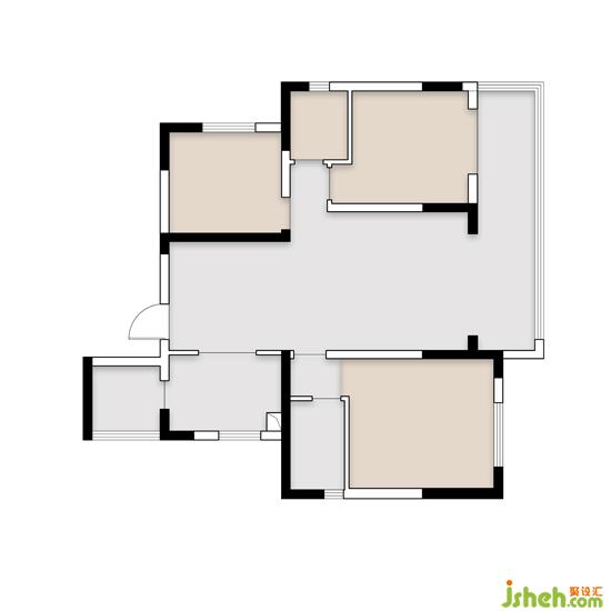②原有陽臺(tái)空間大,考慮到業(yè)主的生活習(xí)慣,將其一分為二,一部分依托于客廳,作為休閑的茶室,一部分用于擴(kuò)充主臥的空間。