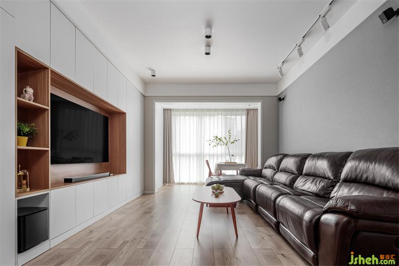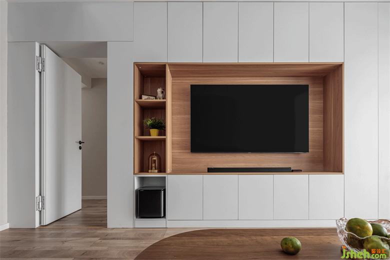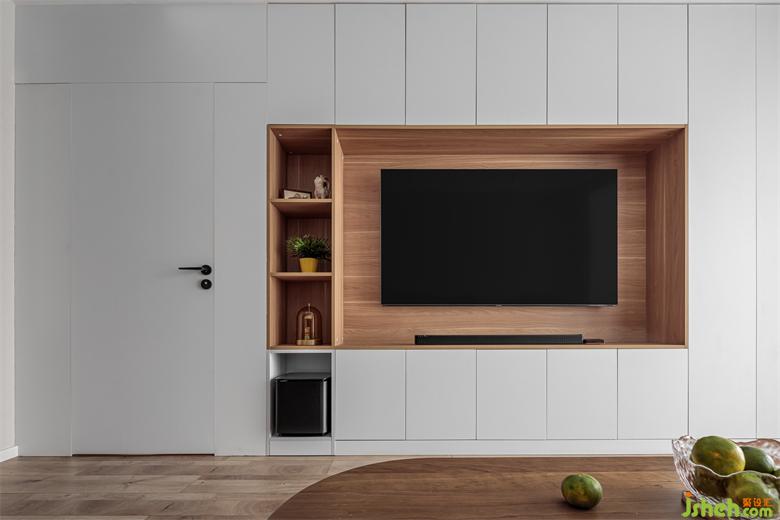 結(jié)合業(yè)主對(duì)音響、游戲的高品質(zhì)要求,電視柜的整體設(shè)計(jì)細(xì)致精確到了電源插座的位置,預(yù)留了后續(xù)各類家電的空間。主臥門也依托整體電視柜做了隱形效果。