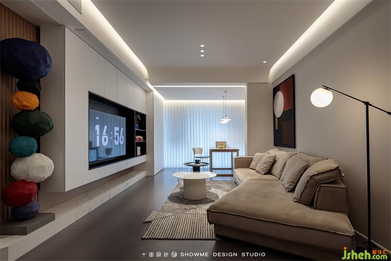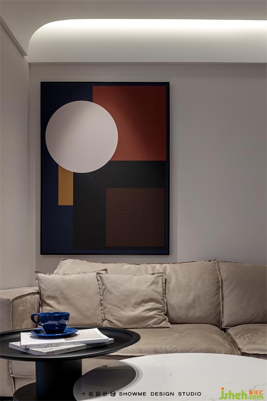 客廳的家具搭配打破傳統(tǒng)規(guī)則的L型沙發(fā)+方形茶幾,改為翅膀型沙發(fā)+圓形錯(cuò)位茶幾的組合,靈活性和實(shí)用性都大大增強(qiáng)。