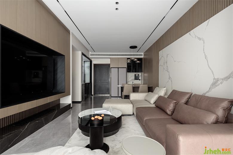 客廳動線自由通透,無主燈設(shè)計讓整個空間簡潔明朗,電視墻以木色柜子,家裝設(shè)計配以暖光,家的氛圍感和溫度瞬間提升。