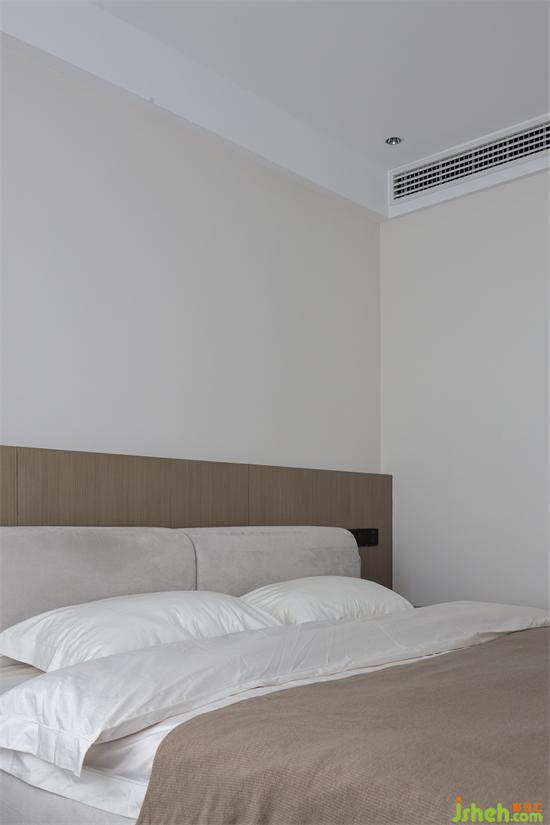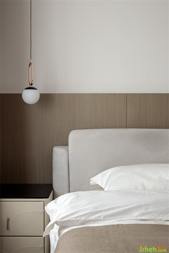 公共區(qū)域的氛圍延續(xù)到私密空間,有了不一樣的表達(dá)。白色、木色、咖啡色的素色拼搭,讓臥室靜謐下來(lái),顯出一種從容不迫的沉穩(wěn)。