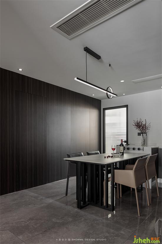 配色延續(xù)了全屋黑白灰的深淺搭配,渾然一體又別有天地。
