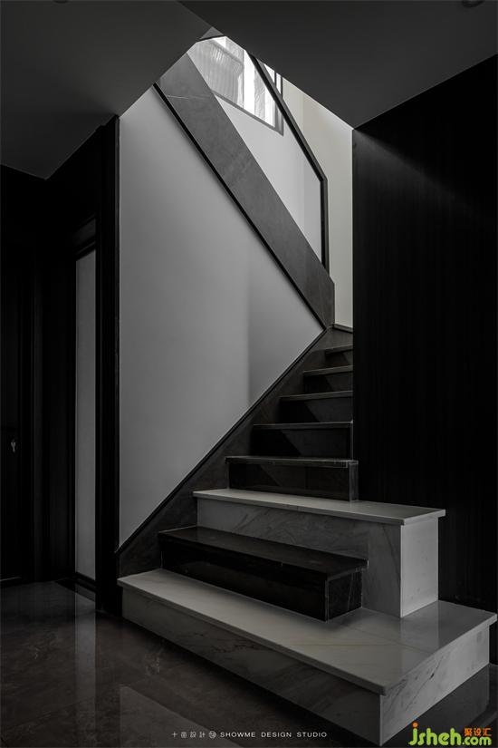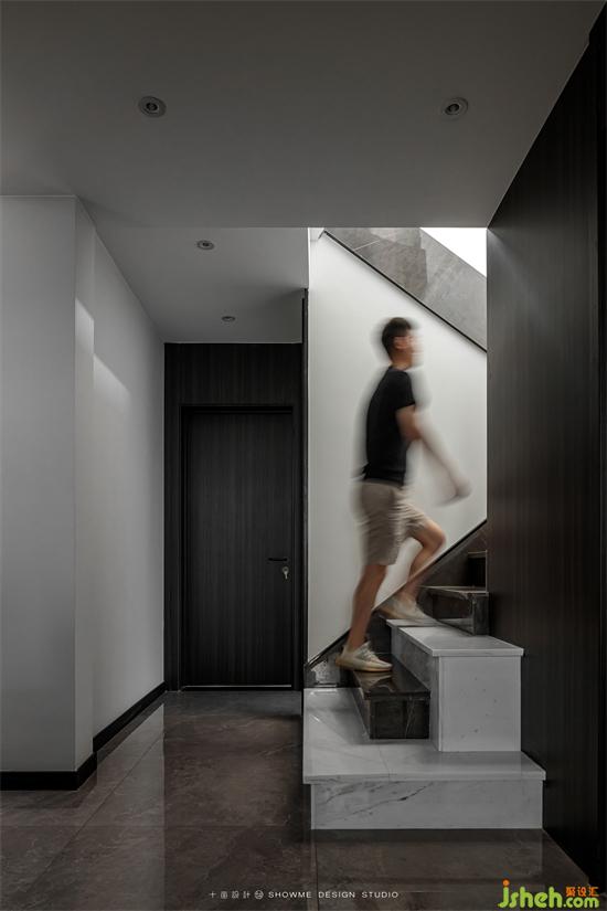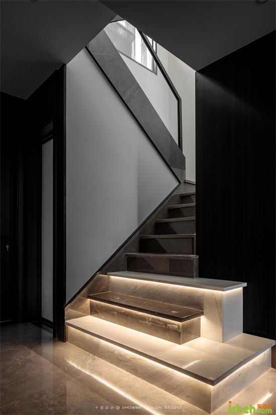 樓梯特色在于每一層臺階都采用了感應燈帶設計,金科王府家裝設計隨著步伐的節(jié)奏,燈帶自動亮起,更有此時無聲勝有聲的音樂律動感。