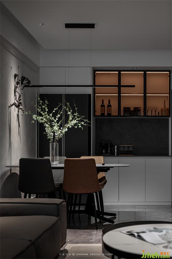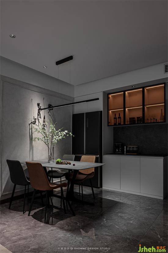 黑色亮面餐桌椅格調(diào)滿滿,內(nèi)江邦泰天著家裝設(shè)計搭配餐廳射燈的柔光,用餐空間的氛圍可以說拿捏得非常到位。