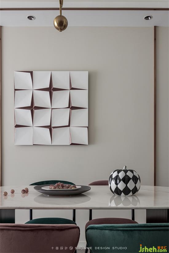 餐廳以簡約實用為主,摒棄過度的裝飾,在餐桌墻上只需一副凹凸有致的掛畫,頤和上院家裝設計空間效果立馬提升起來。