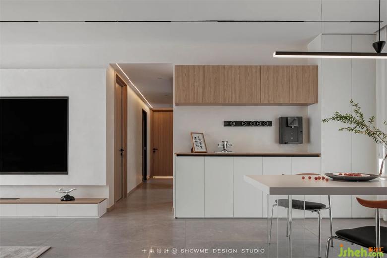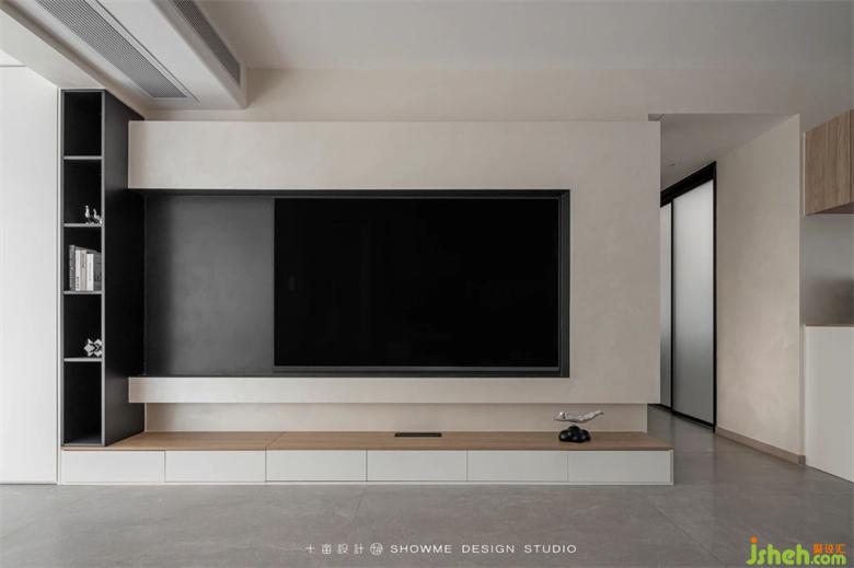 嵌入式電視設(shè)計讓墻面趨于一致,增大了視覺空間。白色落地式電視柜定制了許多抽屜,既能輔助日常收納,同時也方便打掃衛(wèi)生。國賓上院家裝設(shè)計利用率最大化的同時,也營造了充足的空間感,給人放松,舒暢的體驗。