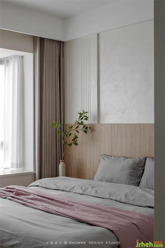 半墻木質(zhì)靠背的設(shè)計讓整個空間有了清晰的層次,摒棄傳統(tǒng)的臥床造型,國賓上院家裝設(shè)計只需要搭配一張簡單潔凈的床框床墊,就能打造出溫馨舒適的睡眠空間。