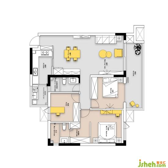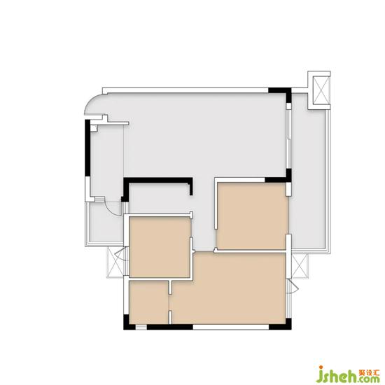 ①房間位三室,基本尊重了原有格局,只在必要處進行了些許改動。