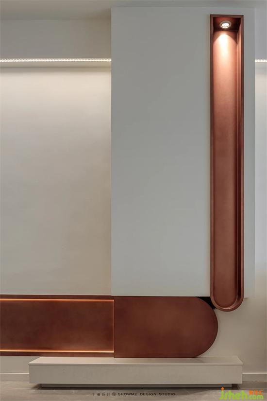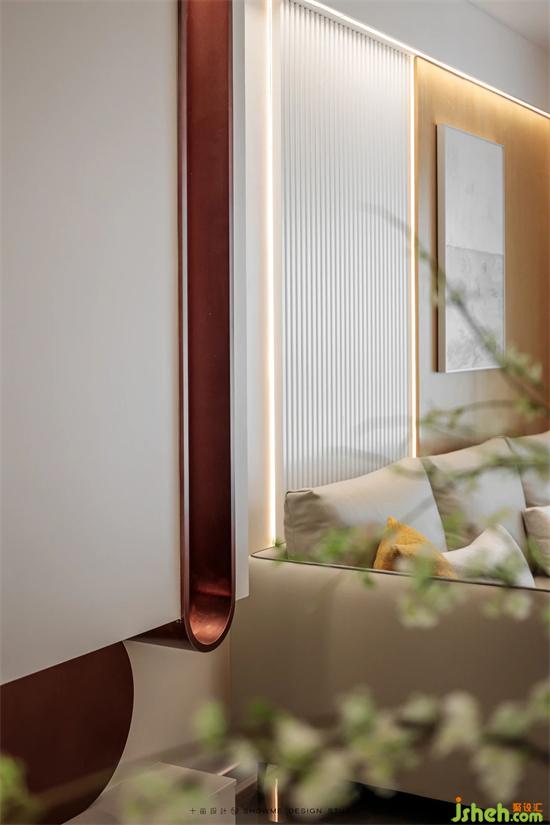 而古銅色的拱形造型,鮮艷欲滴的落地燈,色彩跳動的搭配,邦泰天譽家裝設(shè)計讓整個客廳在平和的觀感下暗藏一絲妖嬈,增添一絲趣味,是遮掩不住的少女心思。