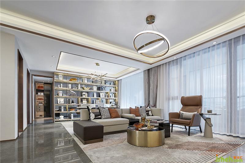 設(shè)計(jì)書房為開敞式書房,與客廳連貫,增大了住戶的感官面積,也滿足了日常生活需求,提升住宅品質(zhì)。樣板房設(shè)計(jì)