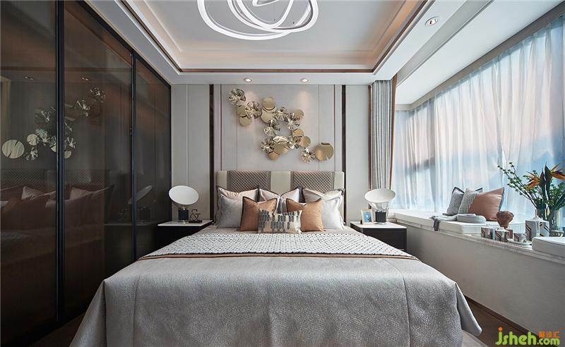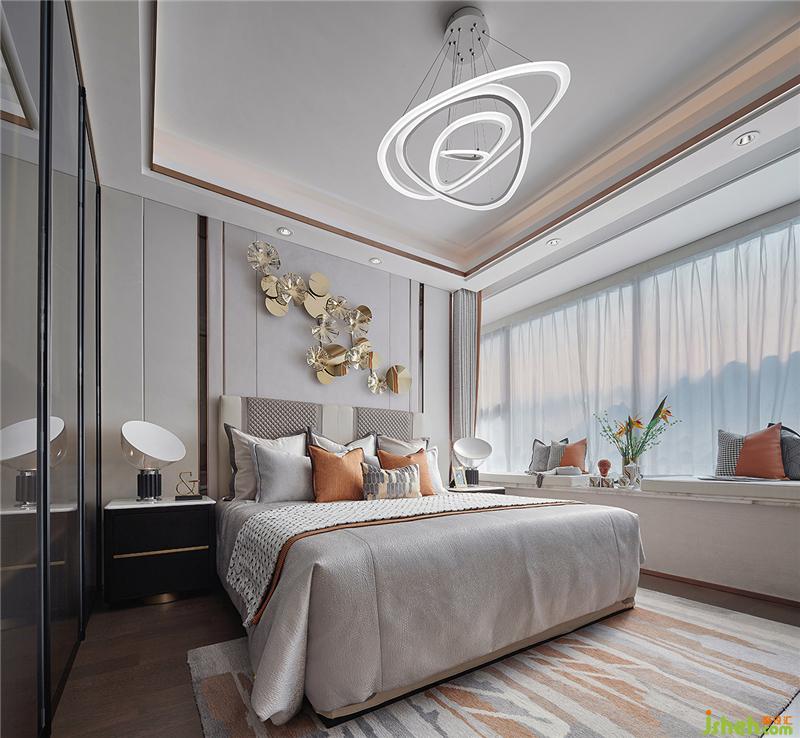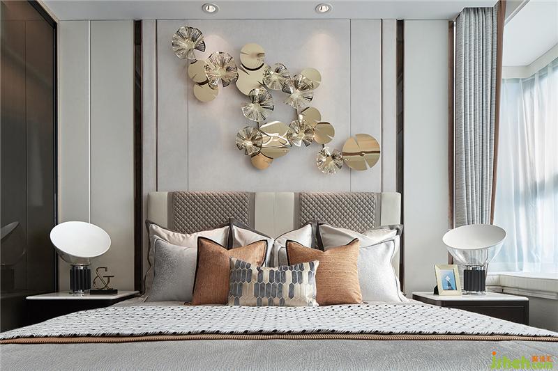 主臥延續(xù)公共空間的典雅,灰白橙的相互交融,營造空間的氣質(zhì),墻上造型獨(dú)特的藝術(shù)飾品在相對(duì)簡約的空間里有了可品的細(xì)節(jié),床品與軟飾的質(zhì)感細(xì)膩不凡,匹配主人房的格調(diào)與定位。樣板房設(shè)計(jì)
