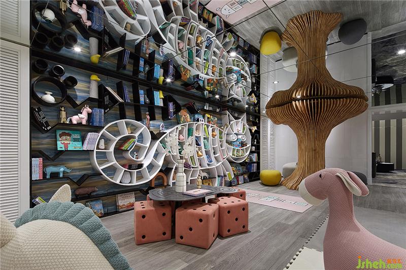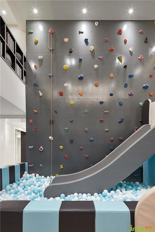 兒童娛樂區(qū)提供兒童活動的空間,攀巖墻、藍白色泡泡球、滑梯創(chuàng)造了豐富多彩的游戲方式,樣板房設(shè)計以“玩”為天性的活動,讓孩子們可以追隨自己自由的心靈。