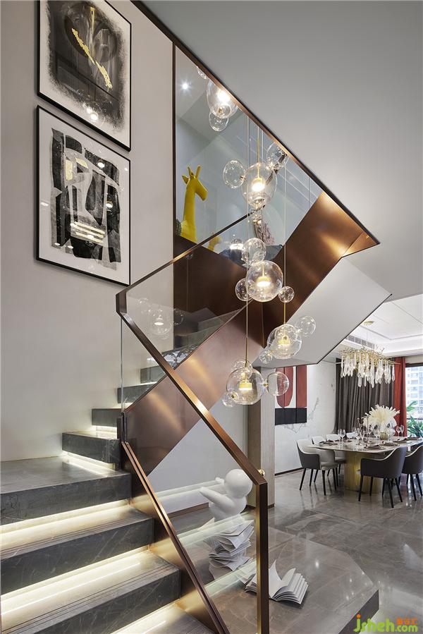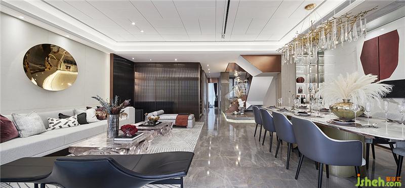 不銹鋼金屬的明亮精致與石材的剛硬冷冽相互交織,勾勒出獨特的空間氣質(zhì)。樣板房設(shè)計