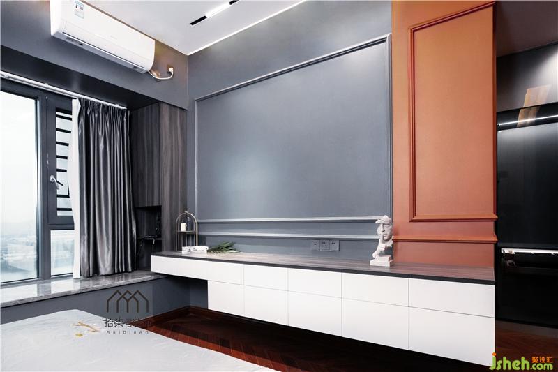 沉穩(wěn)的深灰搭配活力的橙,摒棄傳統(tǒng)的簡約臥室打造充滿時尚、前衛(wèi)的臥室。