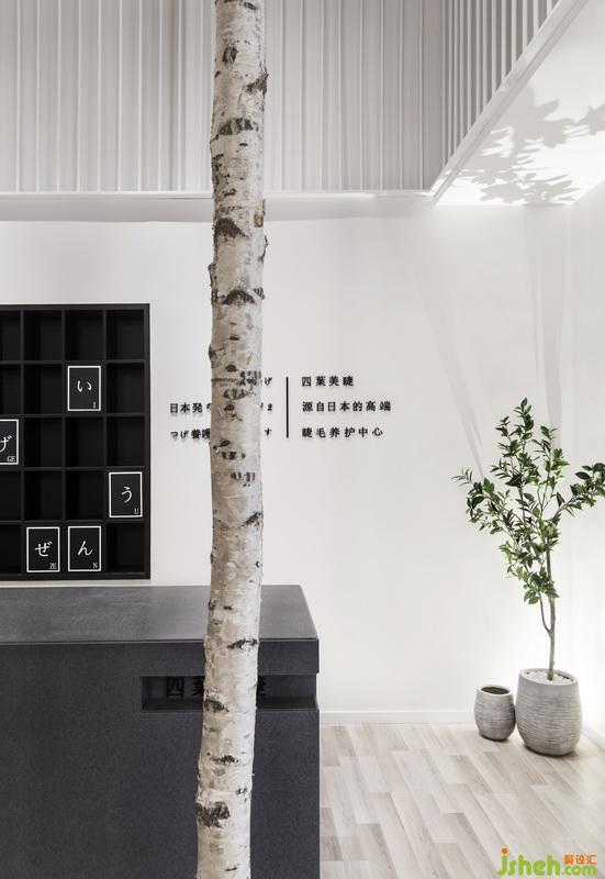 室內(nèi)設(shè)計師將自然引入室內(nèi)空間、大片白墻比作積雪,一片白樺林分割了前臺與休閑區(qū)。巧妙的設(shè)計使空間充滿純潔,朦朧,充滿寧靜的美。