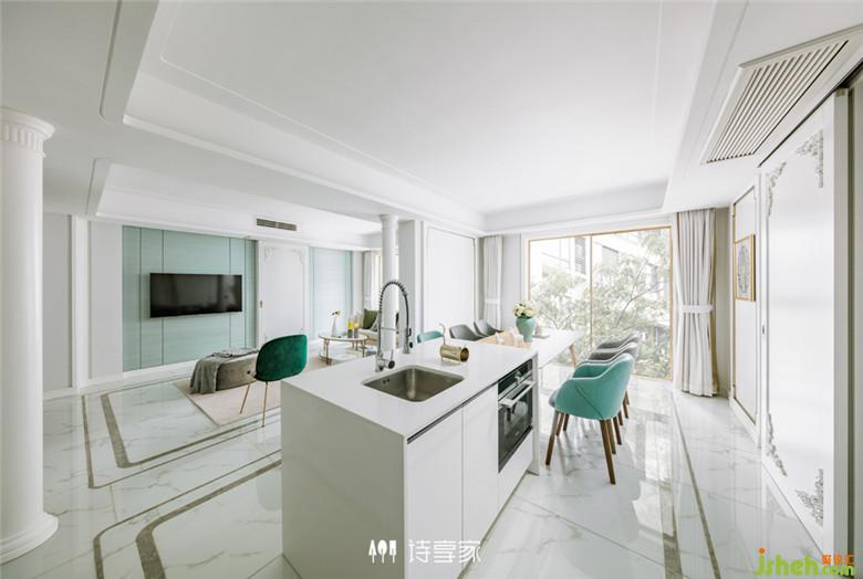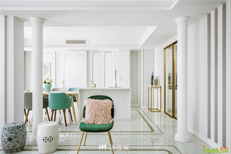 餐廳的設計室內設計師使用了餐桌加島臺的方式,島臺的設計非常完美的滿足了客戶媽媽對有一個操作臺面進行點心制作的愿望,長方形的大餐桌除了滿足日常一家人吃飯的功能外,在家里來客人的時候也能滿足聚餐的功能。 共3頁: 上一頁123下一頁