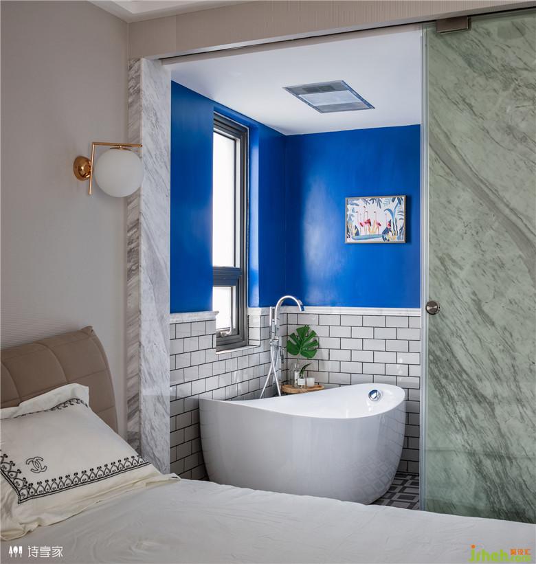 明亮的藍(lán),強(qiáng)烈的視覺沖擊,室內(nèi)設(shè)計(jì)師搭配幾何線條,滿滿靈動的美感。