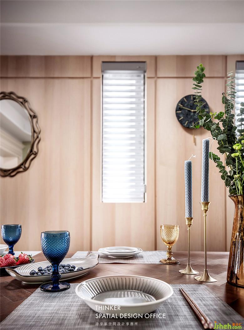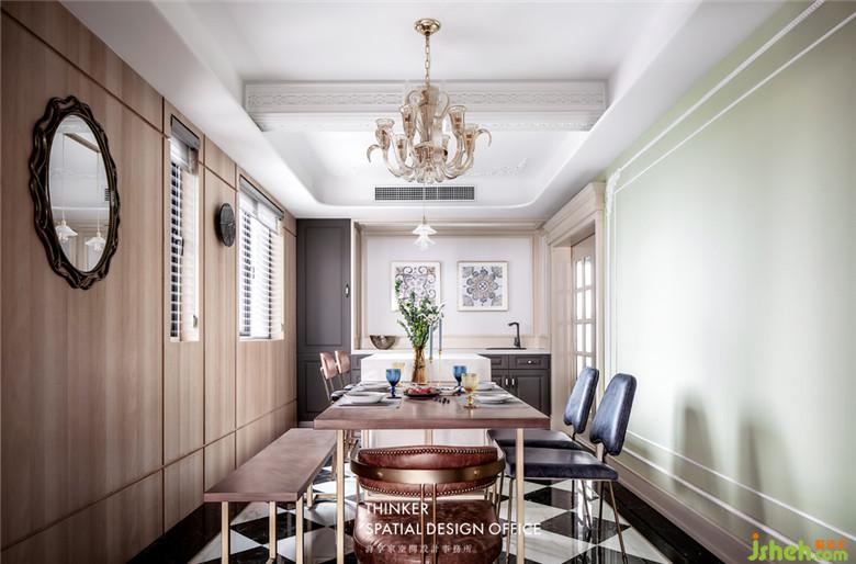 · 中廚,西廚和餐廳有機(jī)地連接在一起,優(yōu)化生活動線。雅士白島臺,原木餐桌,淺色木飾面,清新綠色墻面,一半現(xiàn)代,一半法式,起承轉(zhuǎn)合著復(fù)古之美與現(xiàn)代輕奢的時(shí)尚腔調(diào)。一席長宴,即一件不菲的生活藝術(shù)品,凝聚著溫暖與情感。
