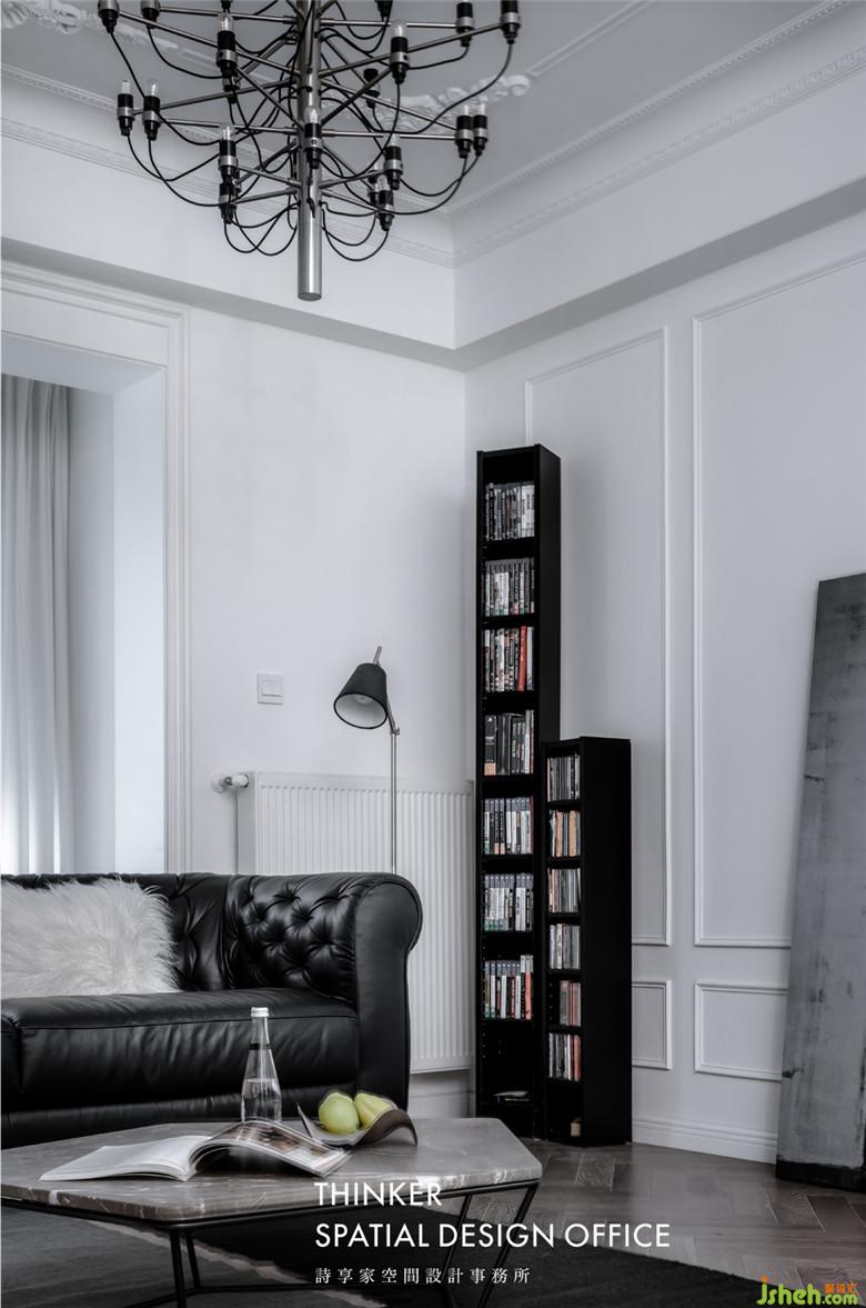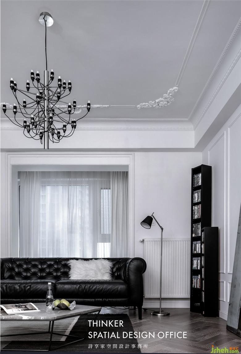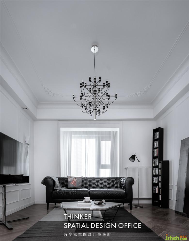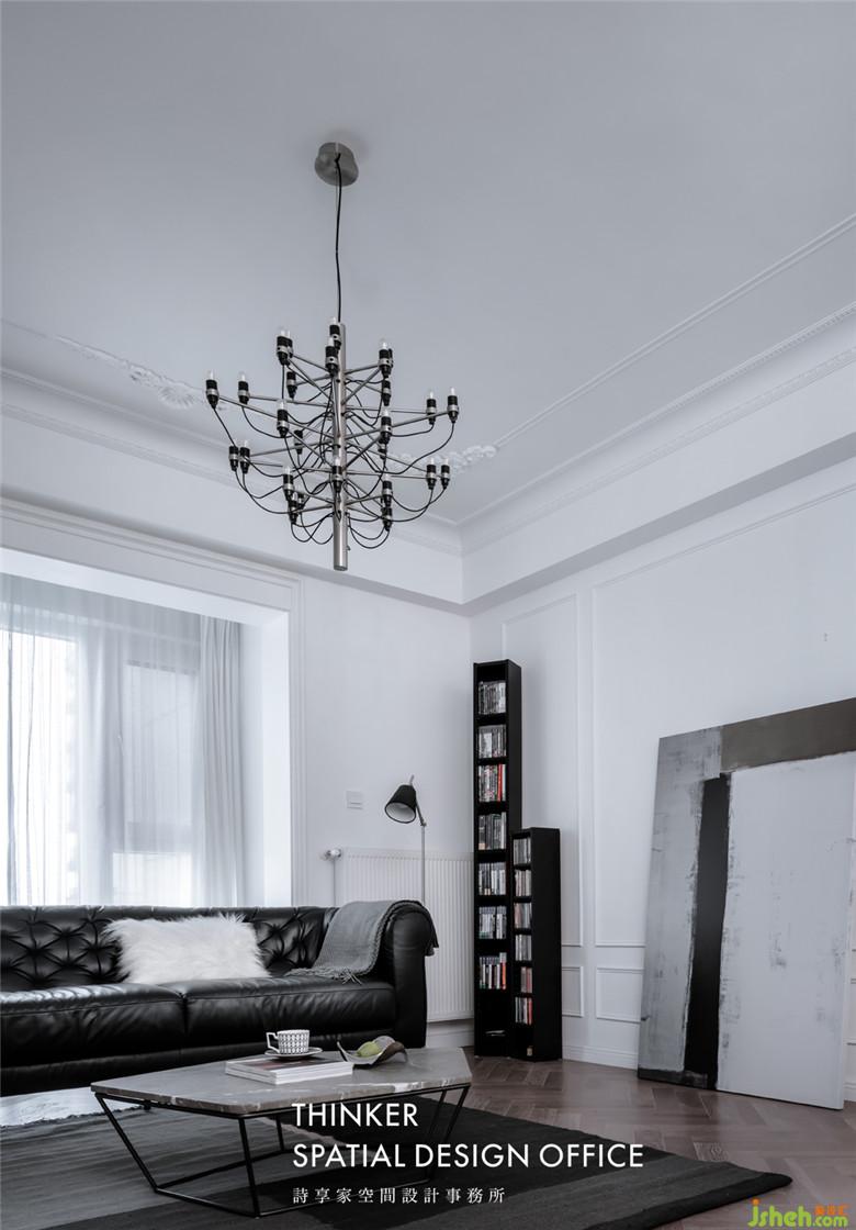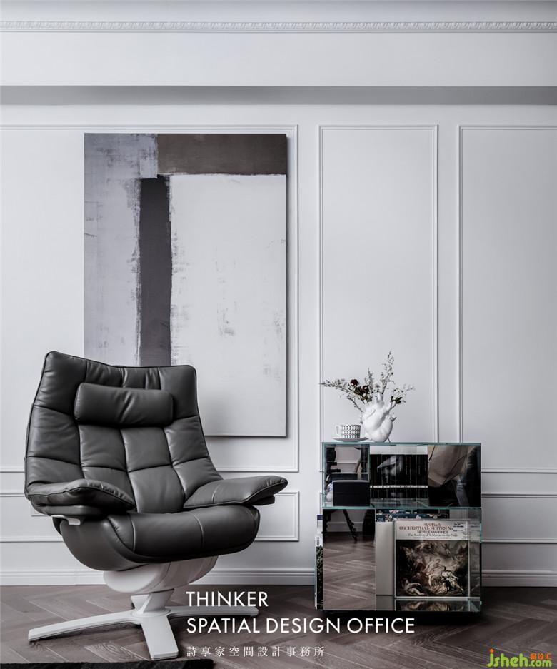 客廳室內(nèi)設(shè)計師沒有采用傳統(tǒng)的布置形式,而是將沙發(fā),單人位,茶幾進(jìn)行合圍式的布局,家人朋友一抬眼就能看到對方,更具互動感和親密性。木質(zhì)地板是黑白空間的溫潤過渡,人字拼花更帶來法式的浪漫氣質(zhì)。