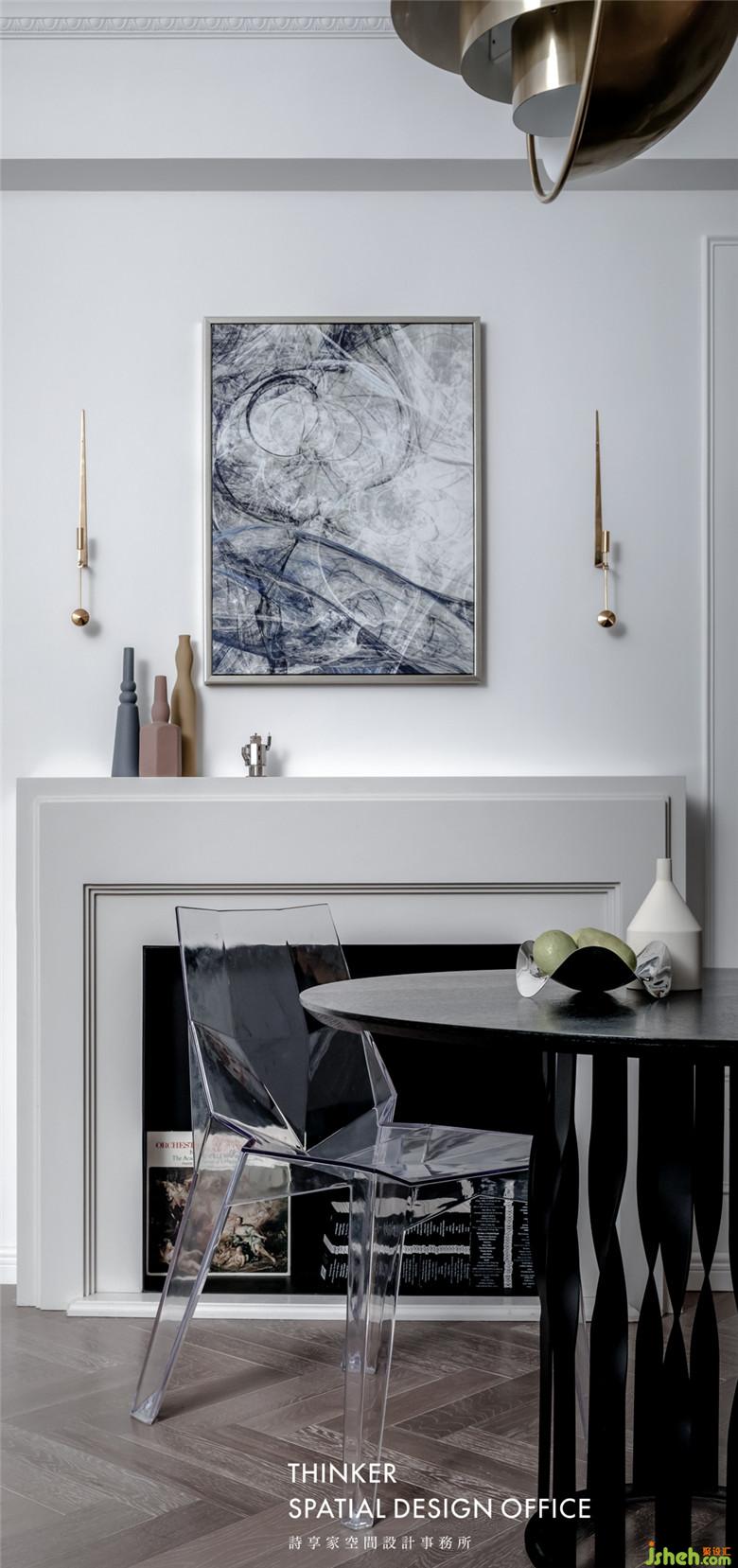 壁爐,雕花線條,IBRIDE貓壁畫,為空間注入古典文藝氣息,植物造型餐桌和鉆石椅,又融入現(xiàn)代意向,為家營造出文化質(zhì)感和優(yōu)雅氣質(zhì)。