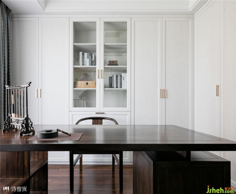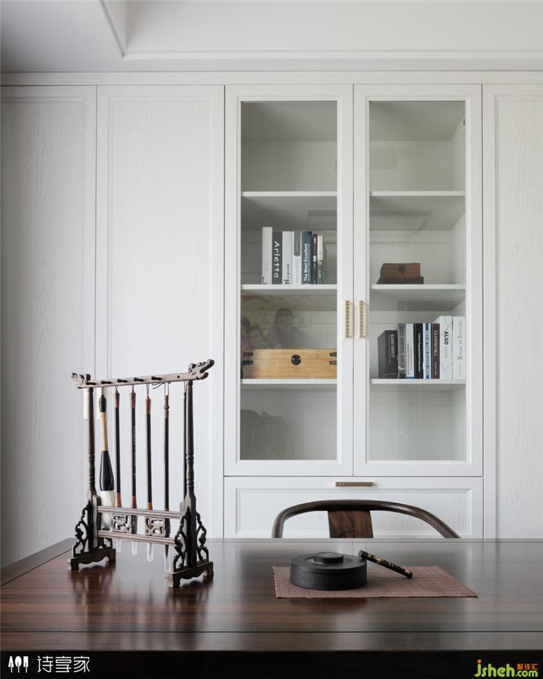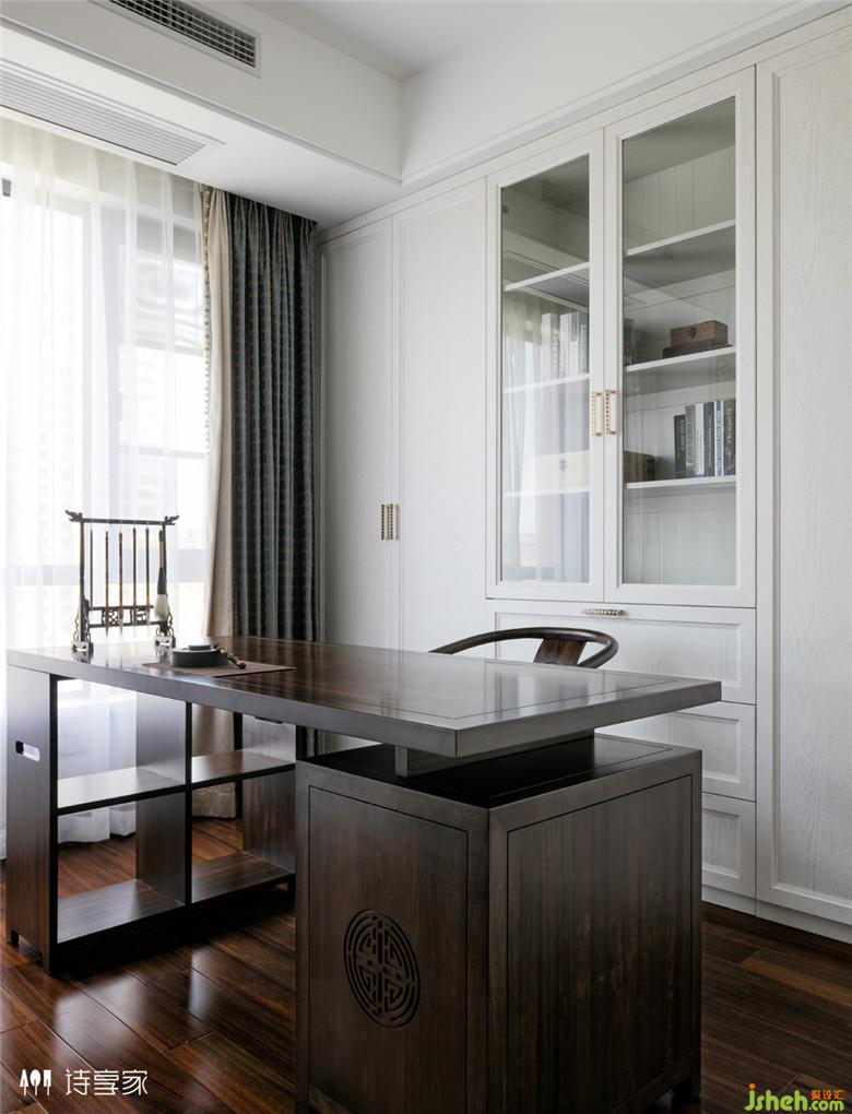 整個設(shè)計以白色和深胡桃色為主,搭配了白色的石材,讓整個空間更加豐富和層次感。地面采用水泥色的地磚,與深胡桃墻面的結(jié)合有一種古色古香的韻味。用現(xiàn)代感的金屬線條與質(zhì)樸的中式相碰撞,擦出不一樣的火花。