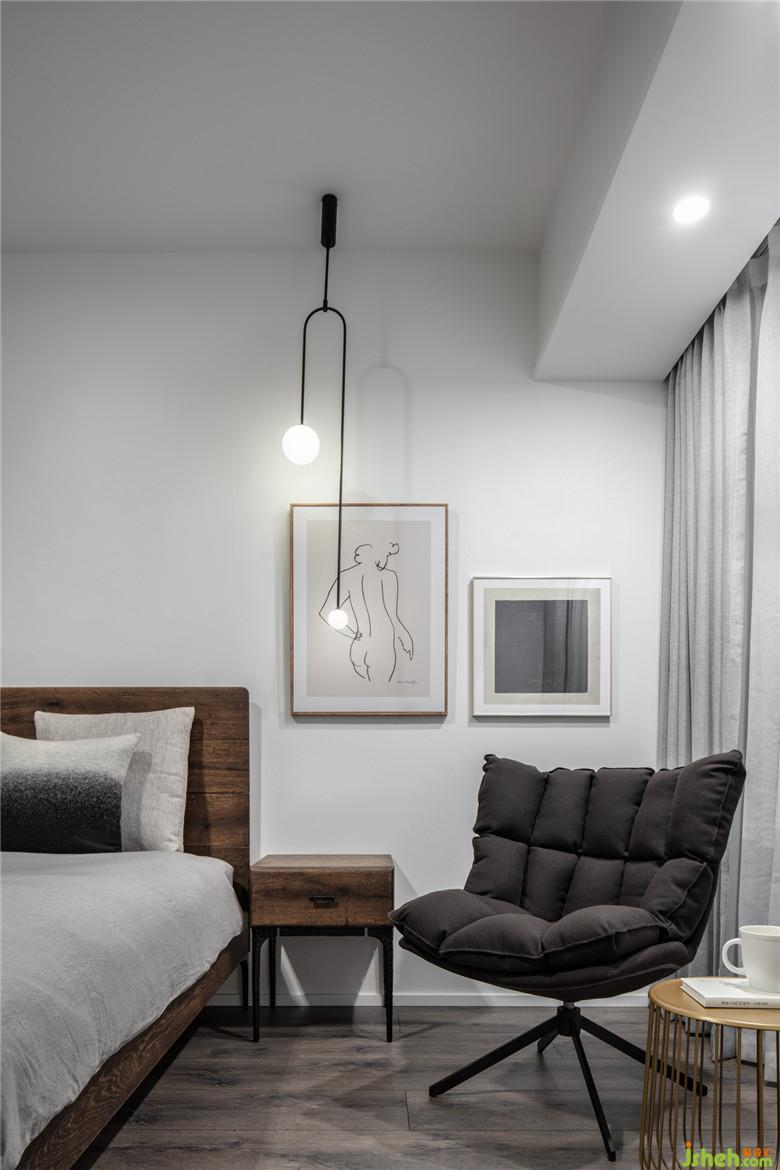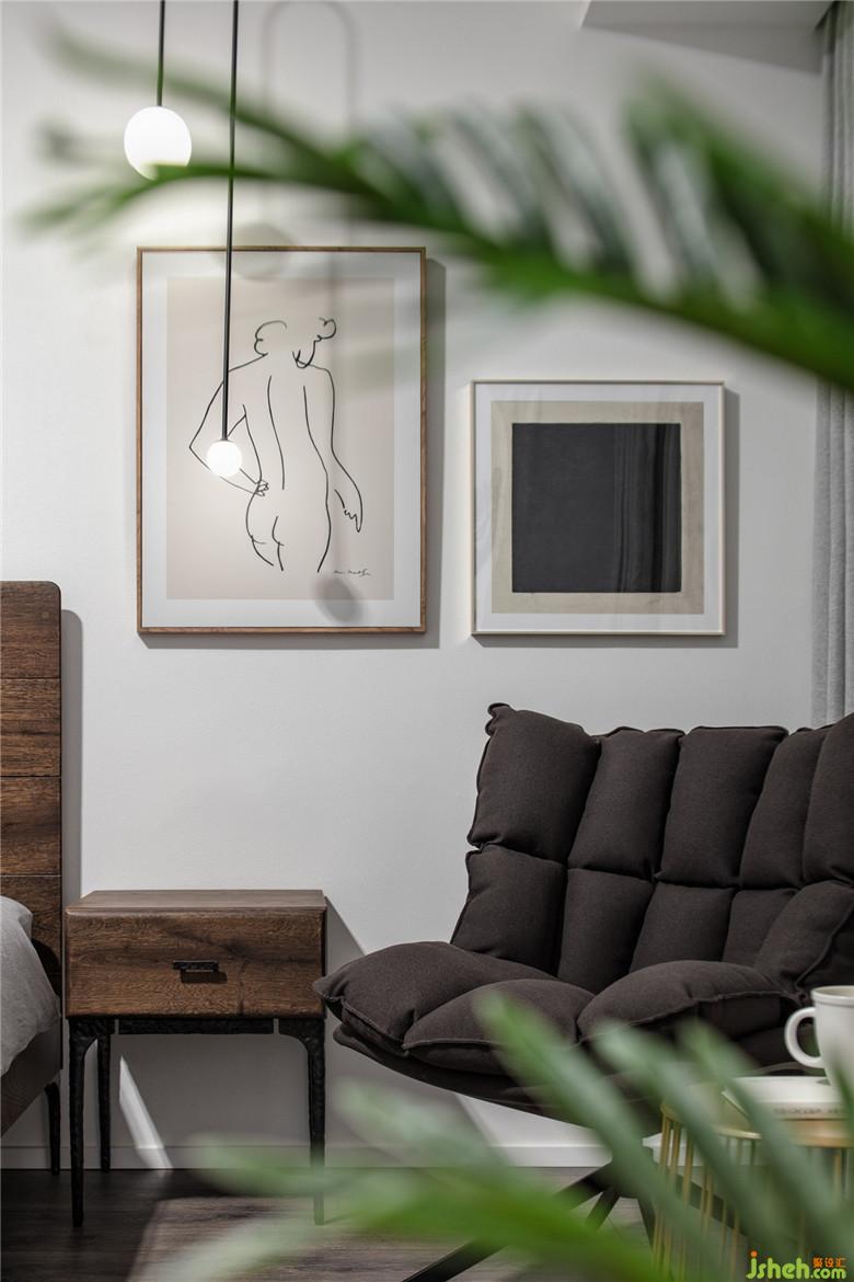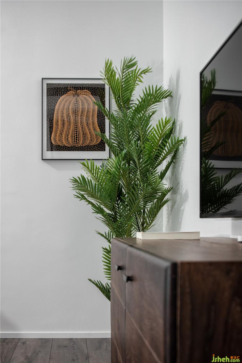原本的飄窗區(qū)域裝扮成舒適的閱讀角,綠植為空間帶來生機與愉悅。