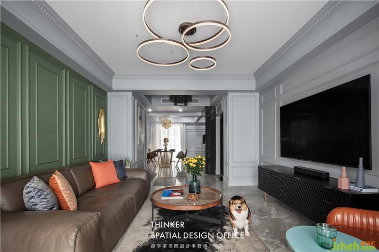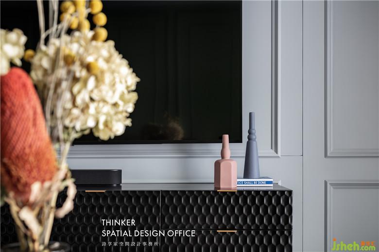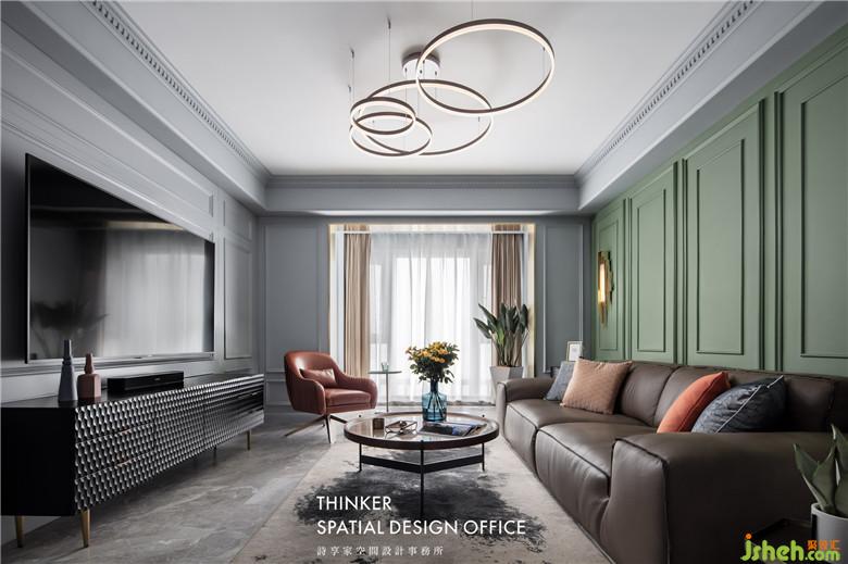 屋主喜歡的線條元素,以不同的形態(tài)在每個空間延續(xù)。簡潔的吊頂,用細(xì)膩的格子線條,沙發(fā)背景,室內(nèi)設(shè)計師則選擇了立體感超強的PU框線,搭配圓弧線條的頂燈,營造出大氣而精致的氛圍,也詮釋著“方與圓”的人生哲理。