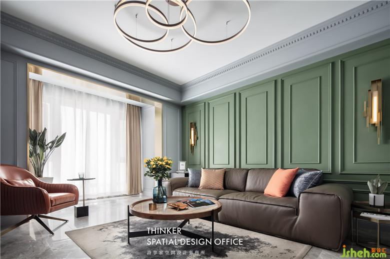 將陽臺擴進客廳,空間更顯明亮開敞亮,對色彩也有了更多的包容度。室內(nèi)設(shè)計師用淺灰色打底,提升空間氣質(zhì),而綠色沙發(fā)背景則顯得生機盎然,不需要任何裝飾畫,都能自成一景。