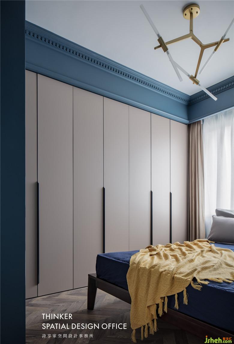 父母偶爾會(huì)來小住,為他們預(yù)留了足夠的收納空間;吊頂?shù)拇蠓鶎捑€條,更顯層高;簡(jiǎn)單舒適的視覺效果,讓家人更有幸福感。