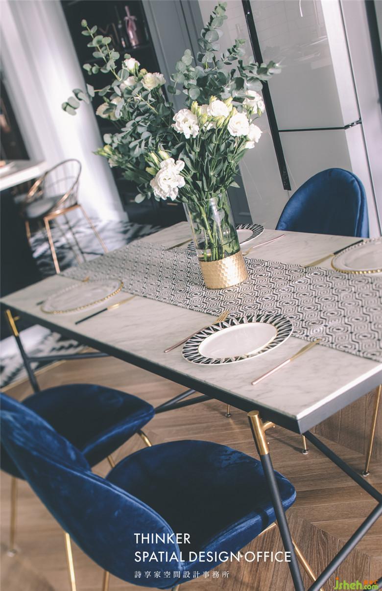 大理石餐桌搭配絲絨餐椅,復(fù)古與現(xiàn)代,硬朗與柔軟,室內(nèi)設(shè)計(jì)師讓整個(gè)空間既有法式的優(yōu)雅,也有當(dāng)代的舒展與利落。
