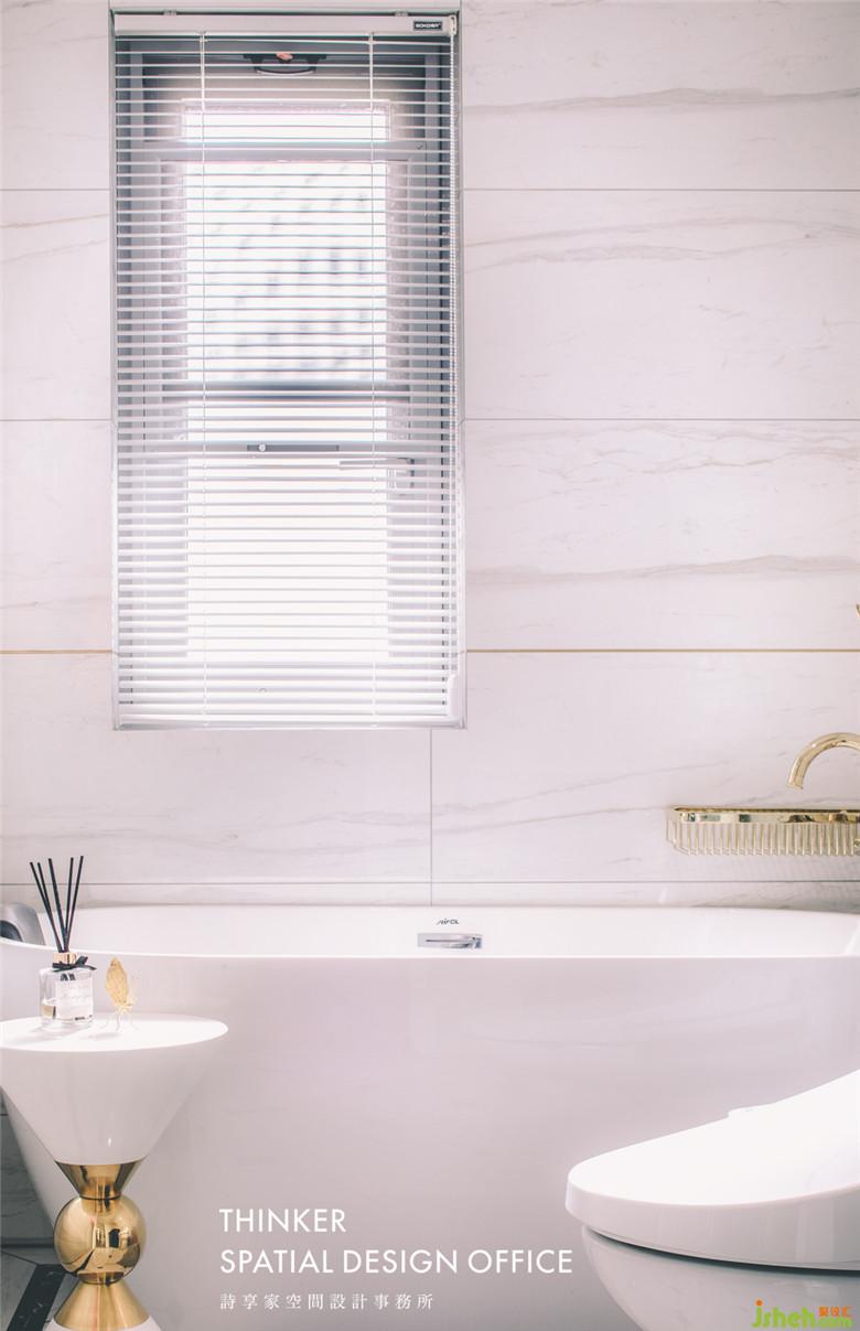 包含在臥室套房中的浴室,是女主人放松的獨立區(qū)域,浴缸,香熏,金色配飾,氤氳出一室閑逸,愛自己的女人,會給自己一個治愈空間。
