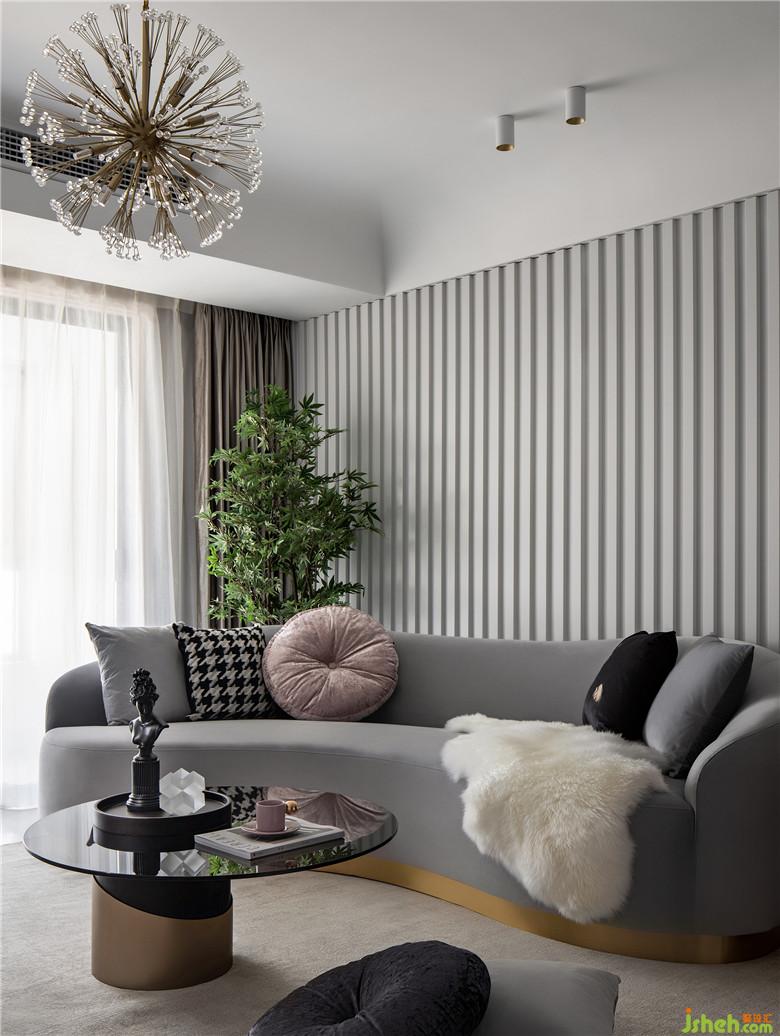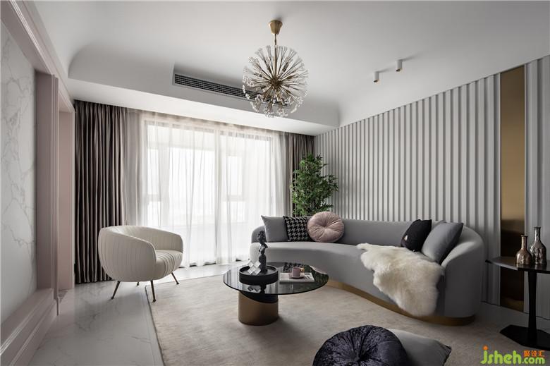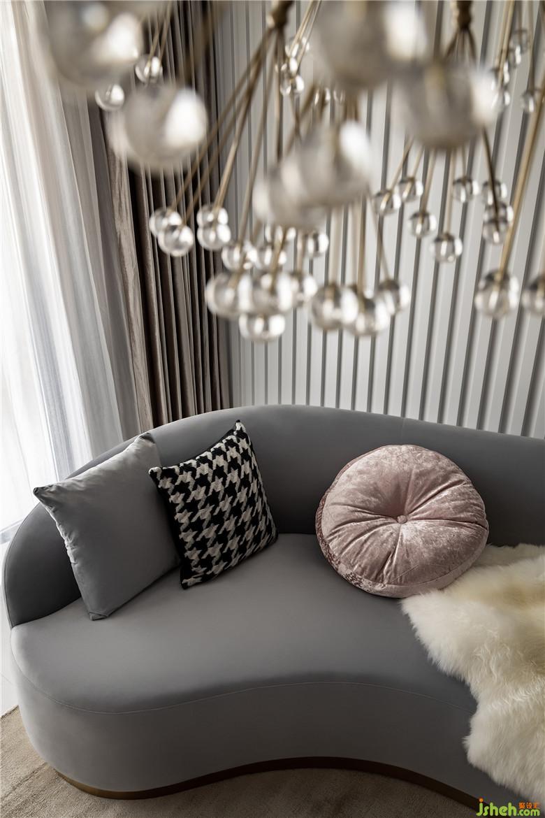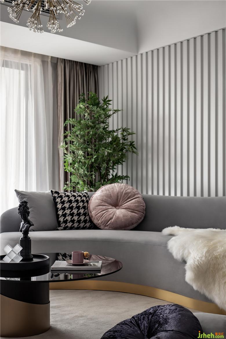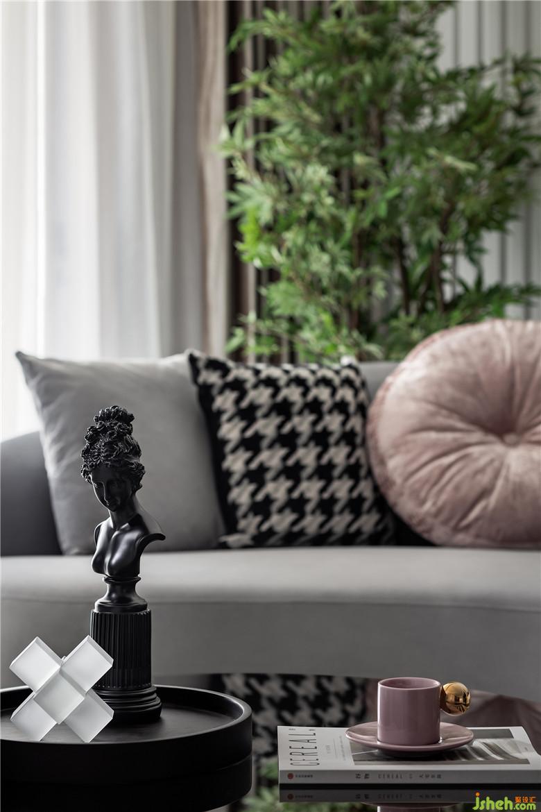 · 在放松休閑的空間中,曲線柔和的沙發(fā)給人圓潤(rùn)溫柔的包裹感,搭配粉色絲絨靠枕,依偎其中,內(nèi)心感受到的是溫暖。裝修設(shè)計(jì)
