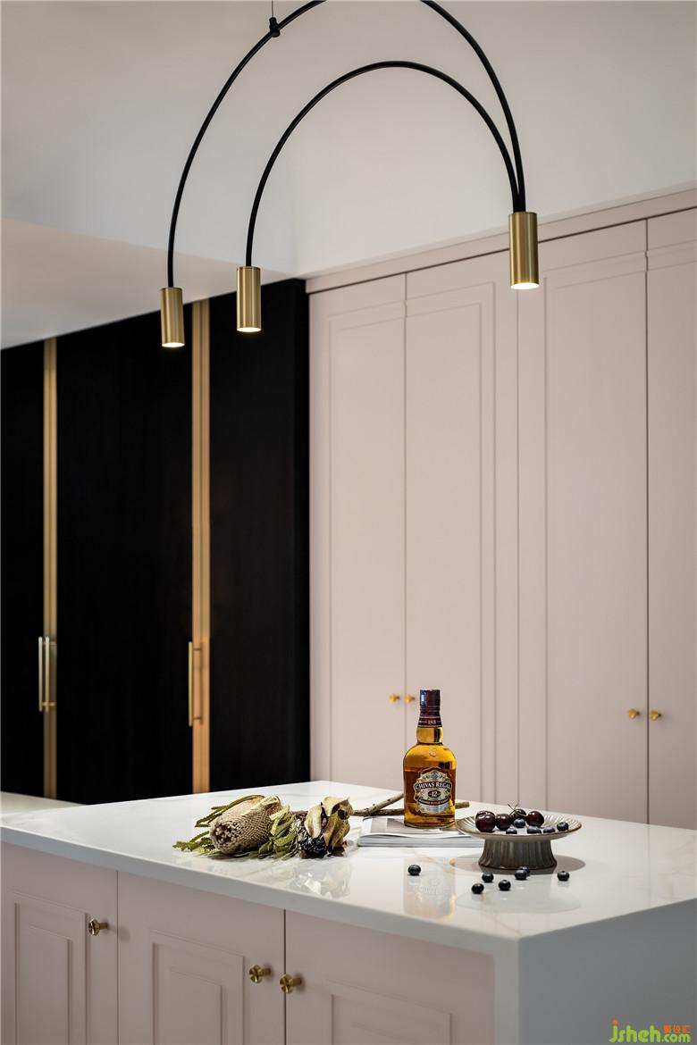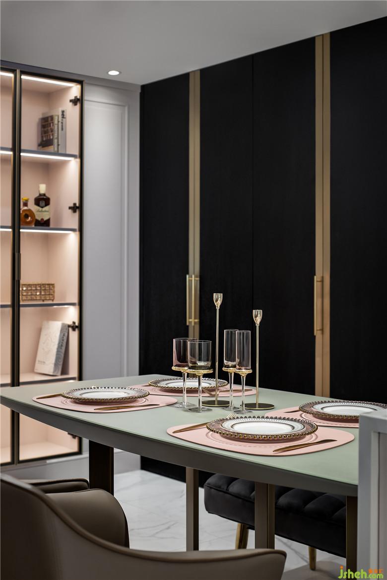 · 餐廳的中島設(shè)計(jì),裝修公司提高了空間互動(dòng)性,也大大增加了操作臺(tái)面和儲(chǔ)物空間,方便又實(shí)用!玻璃展柜擺滿Mini喜歡的小物件,燈光采用燈帶與射燈的結(jié)合,讓不同元素構(gòu)成震撼反差。
