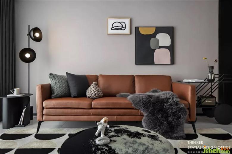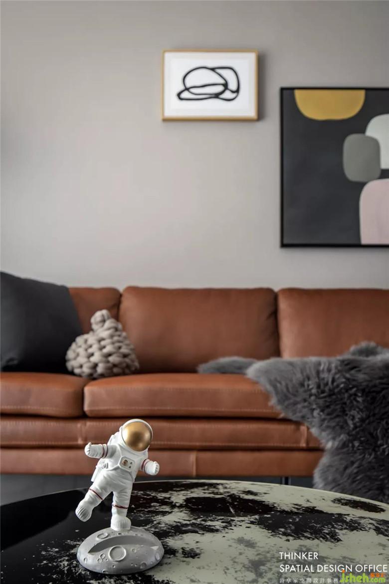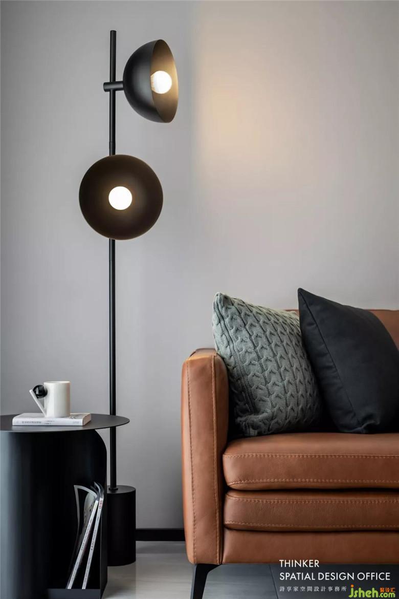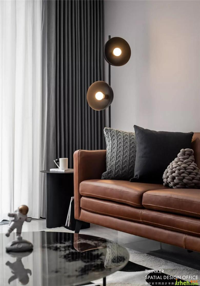 客廳無主燈設(shè)計(jì),點(diǎn)光源讓照明更加勻稱柔和。沙發(fā)旁的黑色喇叭落地?zé)羰莇ada一眼看中的,自帶時(shí)尚科技感,巧妙地與月球茶幾有了呼應(yīng)。