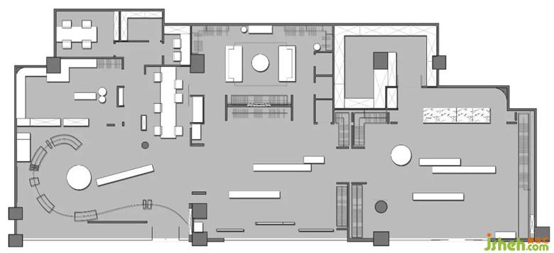 · 空間上打破傳統(tǒng)精品店對稱的格局配置,用開放的展示形式,使空間保有視覺上的延續(xù)。