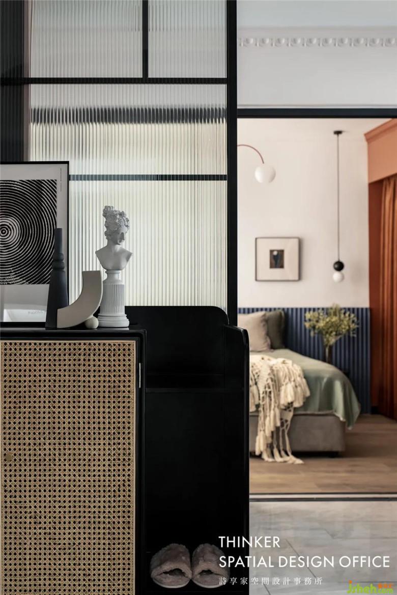 裝修公司借用一點客廳的位置規(guī)劃出一個玄關(guān),方便放置常用的包包,鞋子等小物,Joe特別選了一款藤編柜,老物件的年代感,往往也是時尚的一部分。