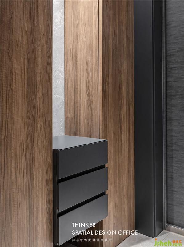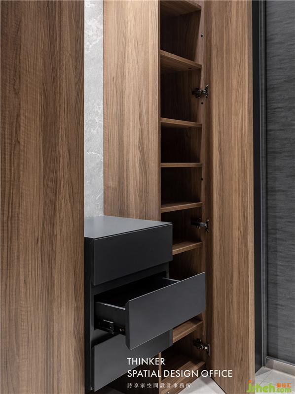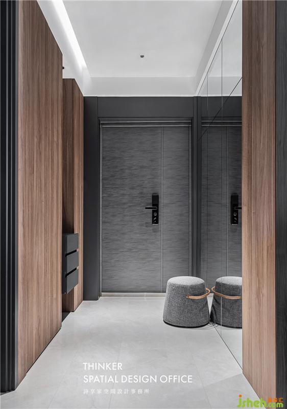 · 入戶門廳以高級(jí)灰和原木色搭配,簡(jiǎn)約清爽,不失雅致。